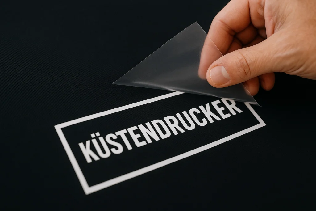 Beim Flexdruck werden Motive aus farbigen Folien geschnitten und unter Hitze auf das Textil gepresst. Perfekt für Einzelstücke oder kleine Serien.